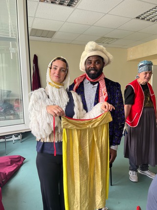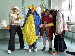 One of the main workshop formats I offer is the costume workshop, which focuses on the choreographic and sensory potential of garments and textiles. Clothes carry layered meanings—they protect, conceal, evoke memory, signal identity, and shape perception. On stage, they guide how we are seen and how we see. In the workshop, participants engage with textiles and garments in a tactile, playful, and open-ended way. We throw clothes onto our bodies and into space—and let them throw back possibilities for movement, character, and composition. Grounded in shifting mediums, this process becomes a space for both intuitive discovery and thoughtful reflection, asking how materials move us and shape our gestures, presence, and perception.